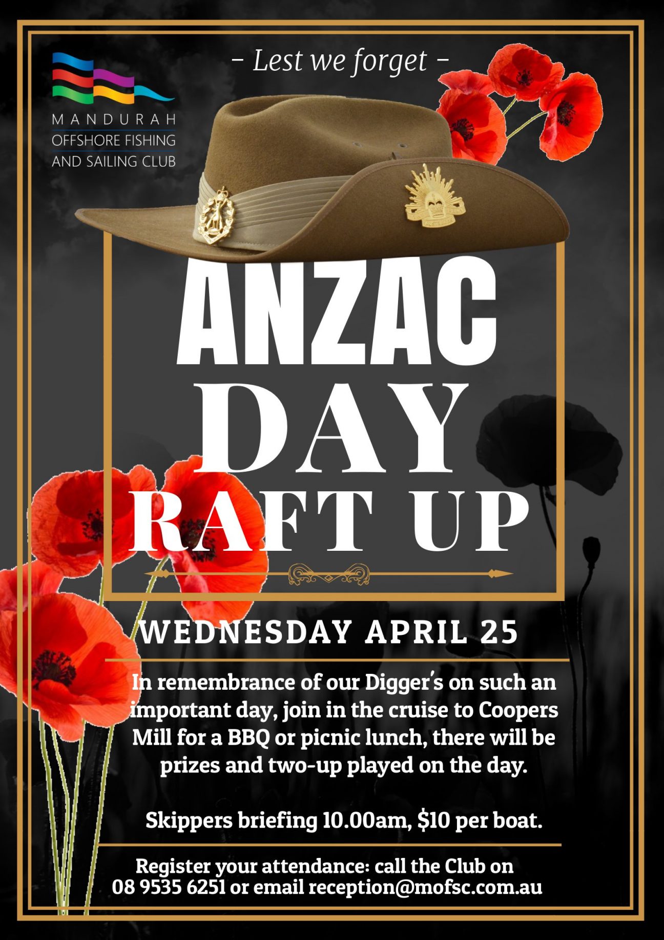 Wednesday 25th April In remembrance of our Digger’s on such an important day, join in the cruise to Coopers Mill for a BBQ or picnic lunch, there will be prizes … Read More