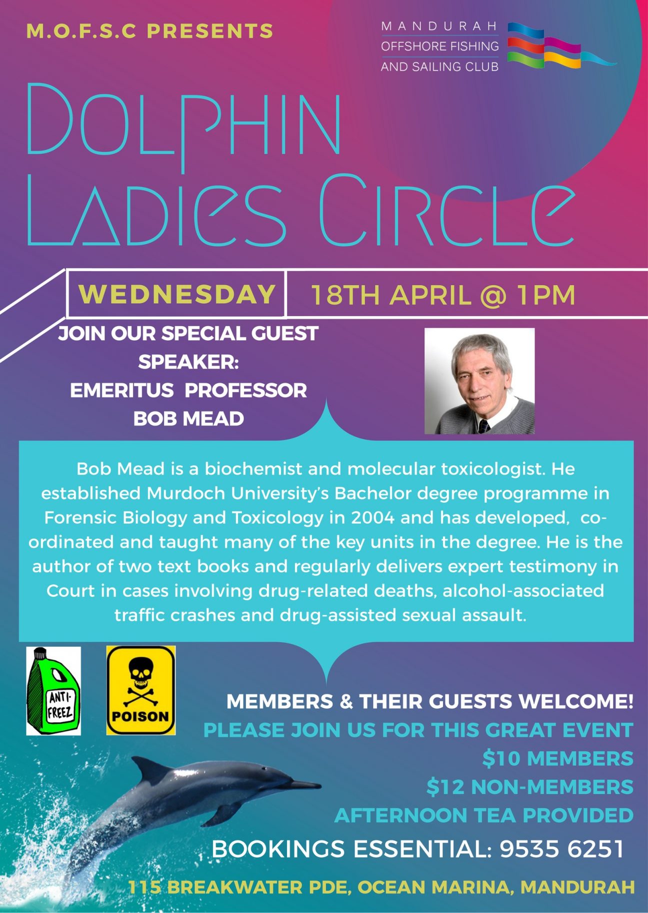 Dolphin Ladies Circle Wednesday 18th of April – From 1pm Special Guest Speaker: Emeritus Professor Bob Mead Bob Mead is a biochemist and molecular toxicologist. He established Murdoch University’s Bachelor … Read More
