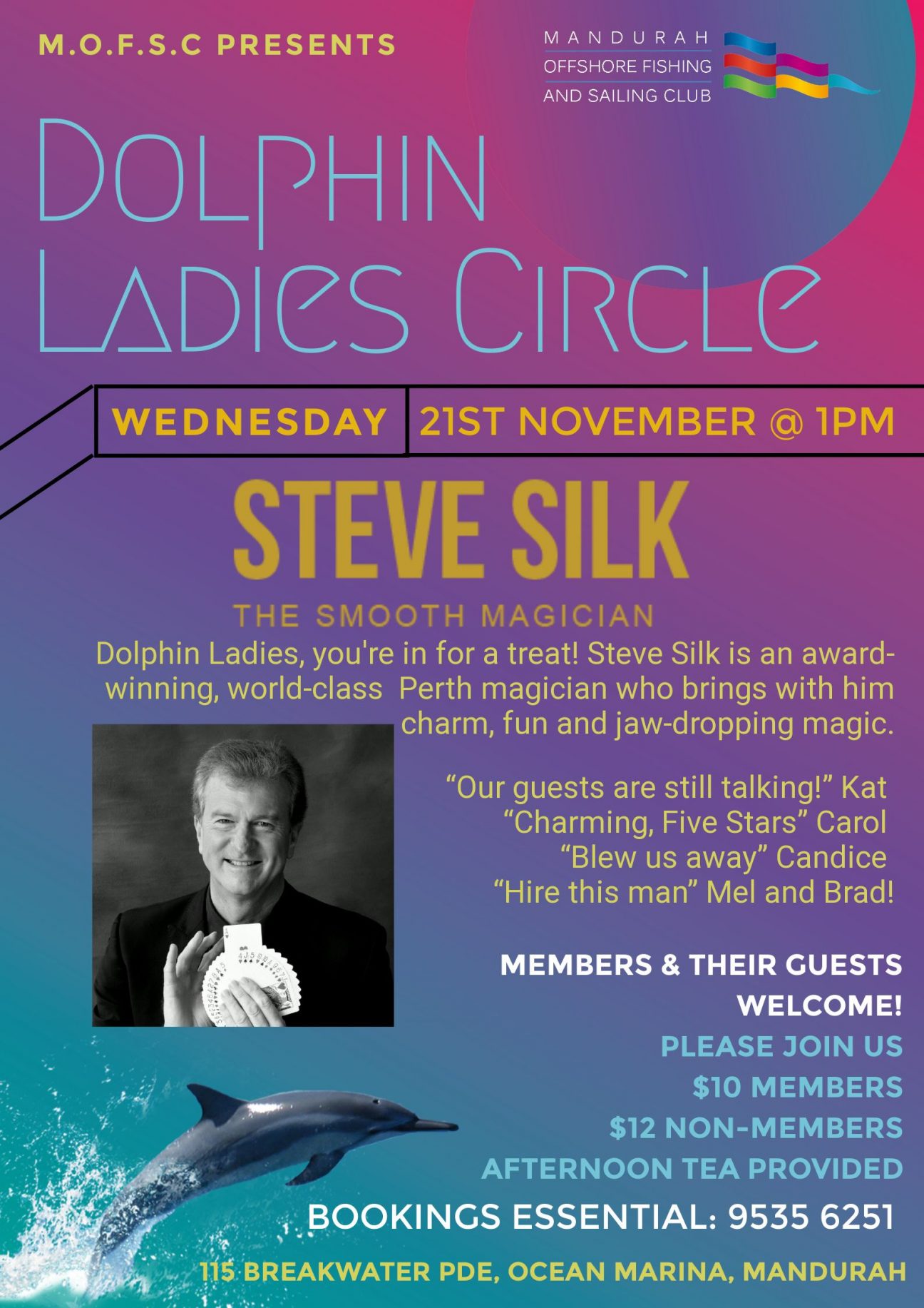 Dolphin Ladies, you’re in for a treat! Steve Silk is an award-winning, world-class Perth magician who brings with him charm, fun and jaw-dropping magic. The third Wednesday of the month … Read More