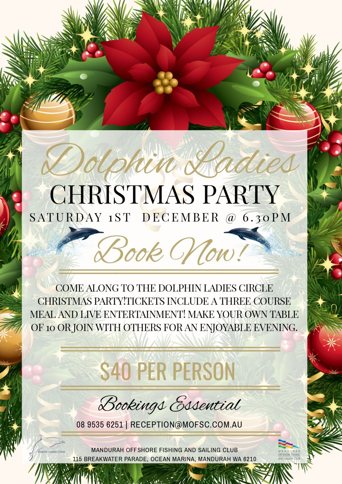 Dolphin Ladies Christmas Party Saturday 1st December 2018 @ 6:30pm Come along to the Dolphin Ladies Christmas Party! Tickets are $40pp & include a three course meal & live entertainment. … Read More