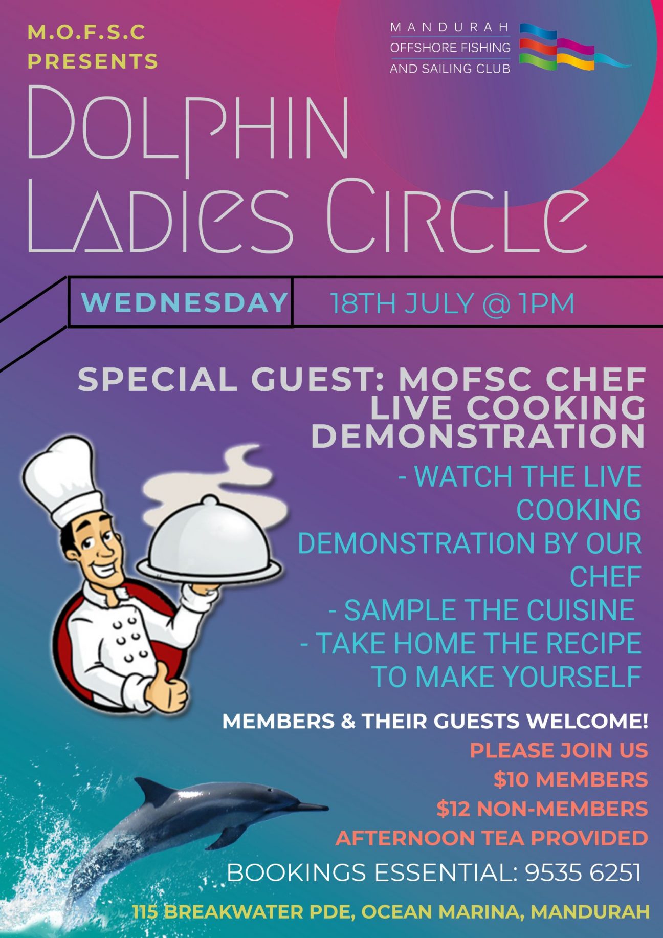 Dolphin Ladies Circle Wednesday 18th July – 1pm Special Guest – MOFSC Chef Enjoy a Live Cooking Demonstration by our Chef during the next Dolphin Ladies Circle, then sample the … Read More