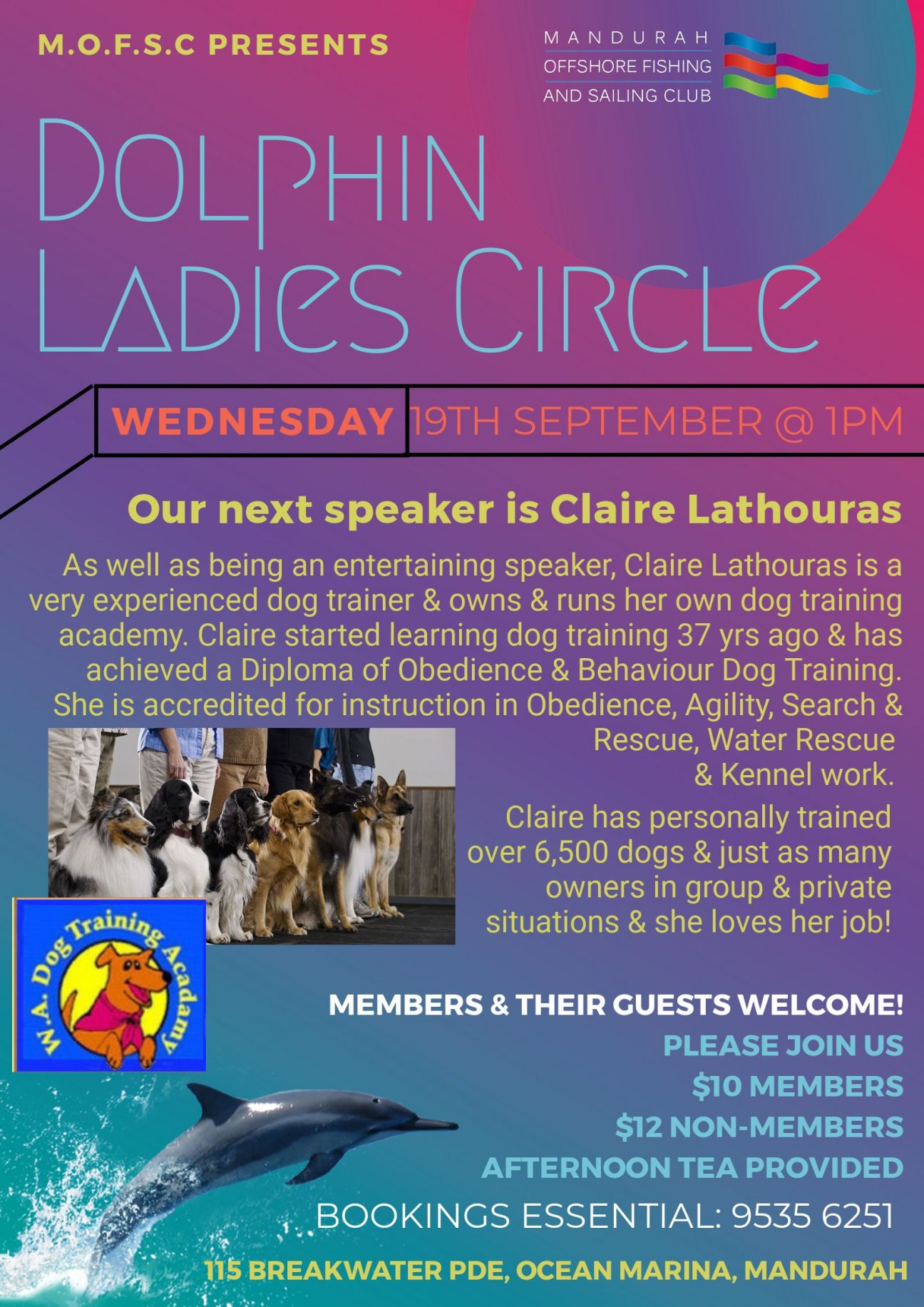 Wednesday 17th October The next Dolphin Ladies – 17th Oct, is the bus trip! Make your booking & payment (cash only) at MOFSC Reception ASAP to secure your place. Tickets … Read More