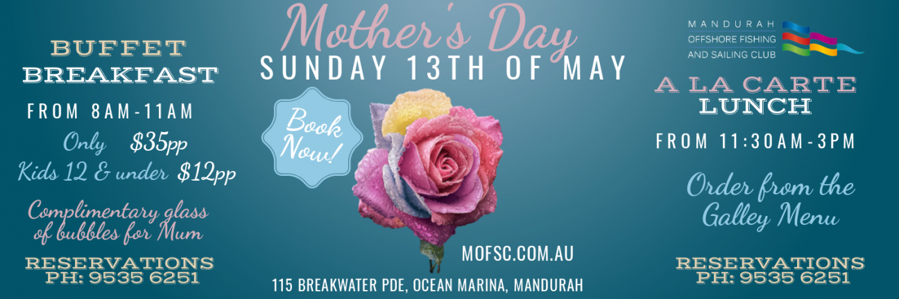 Mothers Day Breakfast Sunday 13th May 8am – 11am Bring Mum, Grandma & family out to MOFSC for a scrumptious Buffet Breakfast this Mothers Day & enjoy beautiful marina views. … Read More