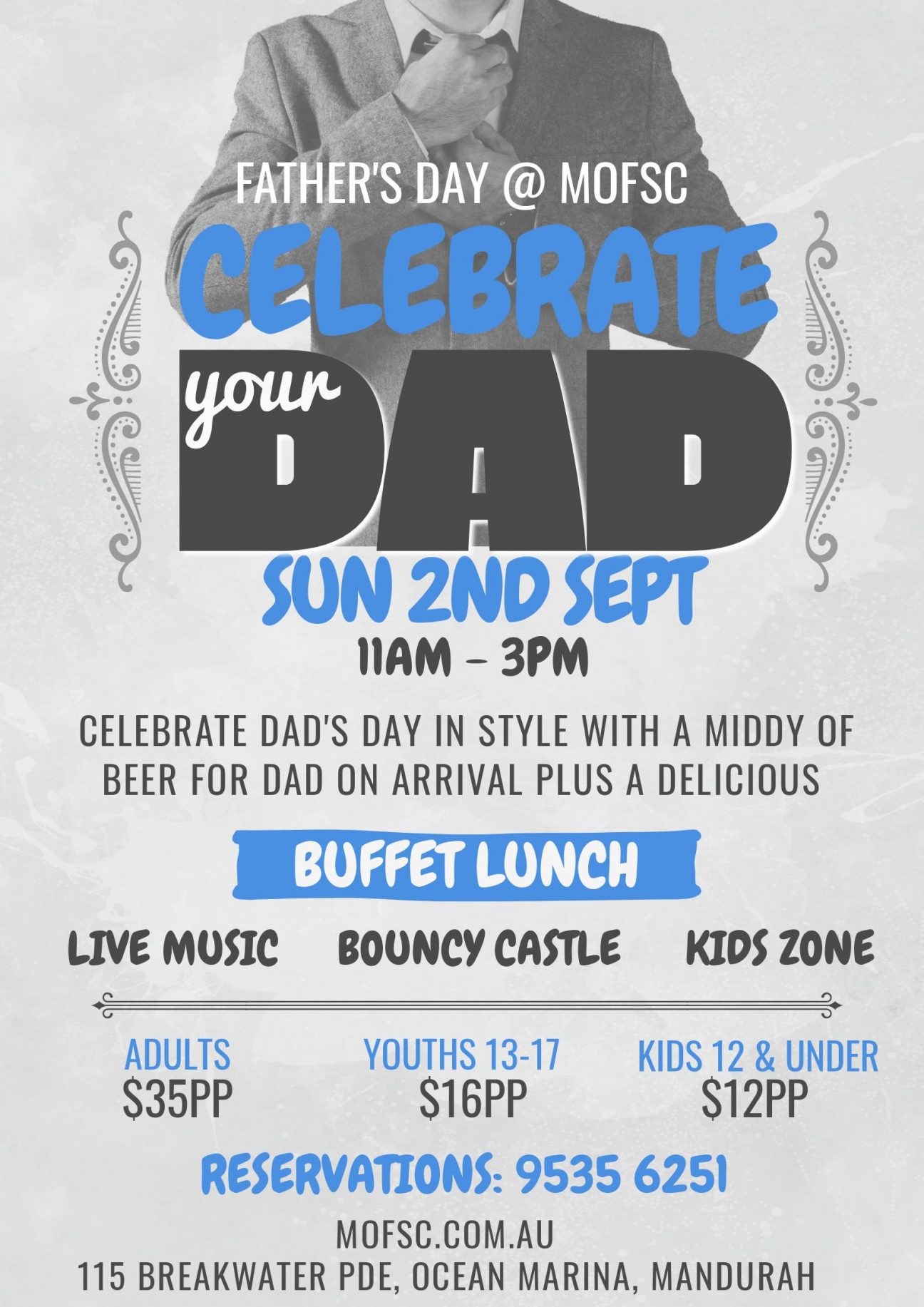 Father’s Day 2018 – Sunday 2nd September – 11am – 3pm Celebrate Dad’s day in style at MOFSC with a middy of beer for Dad on arrival & a delicious … Read More